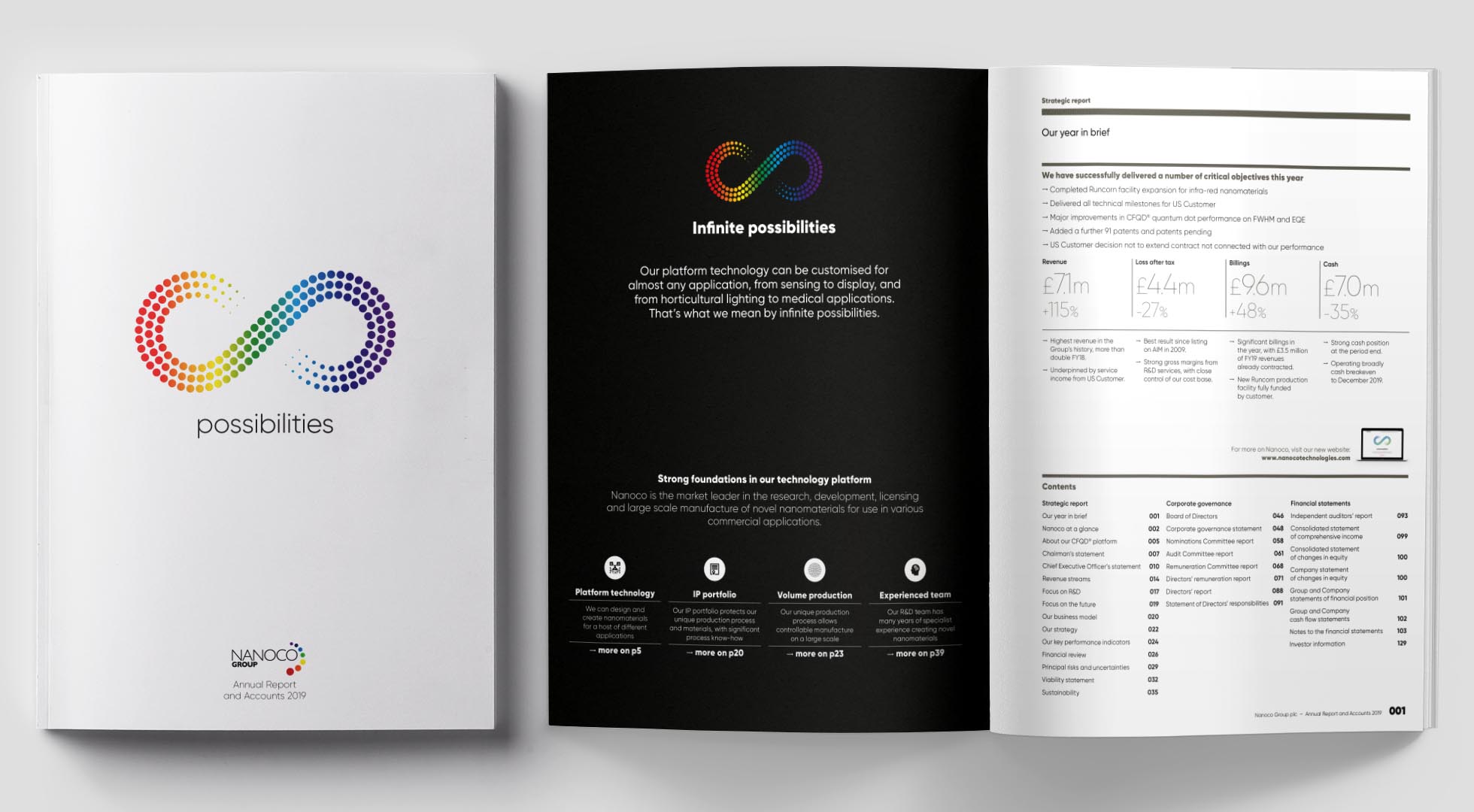 In 2019 I led the creative for the latest Annual Report for Nanoco, one of the world’s leading nanotechnology pioneers. With clients like Nanoco, the major challenge is always to find a way to tell a complex story simply.